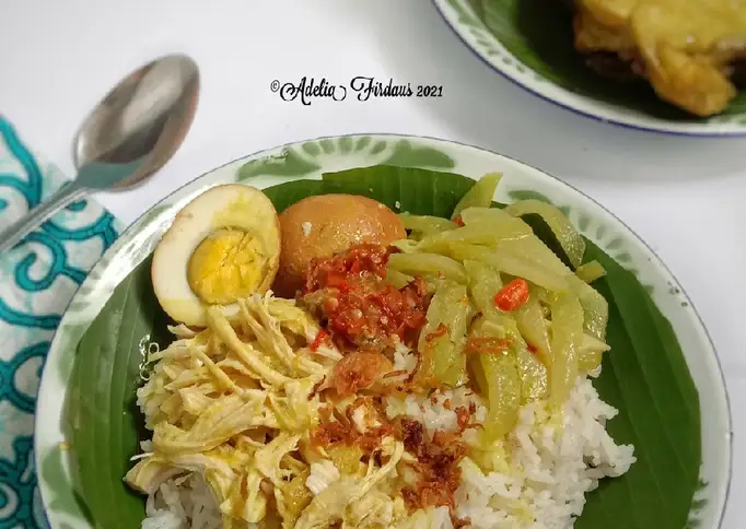 Gunakan 1/2 ekor ayam kampung (aku pakai dada ayam negri utuh). Ambil 2 lbr daun salam. Ambil 2 lbr lengkuas. Ambil 3 lbr daun jeruk. Sediakan 1 batang serai. Siapkan 500 ml santan kental dari 1 butir kelapa. Sediakan 500 ml santan encer dari sisa perasan kelapa. Sediakan Bumbu Halus :. Ambil 5 siung bawang putih. Gunakan 10 bh bawang merah. Gunakan 4 bh kemiri. Siapkan 1 cm kunyit bakar. Sediakan 1/4 sdt ketumbar. Siapkan Secukupnya gula merah,garam dan kaldu jamur. Gunakan Nasi Gurih :. Ambil 500 gr beras. Gunakan 3 lbr daun salam. Gunakan 2 lbr daun sereh. Gunakan 1 sdm garam. Sediakan Secukupnya santan. Gunakan Tumis labu Siam :. Ambil 2 bh labu Siam,potong². Ambil 2 sdm bumbu halus diatas. Gunakan 2 lbr daun salam. Siapkan 500 ml santan. Sediakan Secukupnya garam dan kaldu jamur. Gunakan Pelengkap :. Siapkan Telur Pindang. Siapkan Bawang goreng.